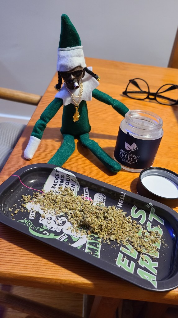 At our annual Thanksgiving Chinese buffet dinner my sister-in-law took it upon herself to purchase us all a Snoop On A Stoop doll. It’s like Elf On A Shelf but with Snoop Dog. We’ve been sending each other photos. Here is my latest photo.