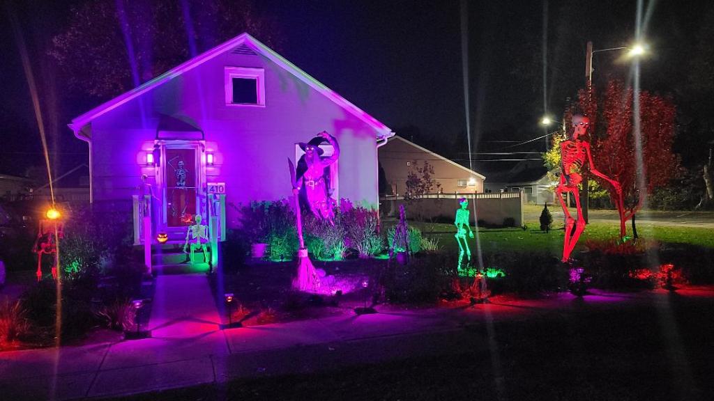 What we were most happy about though was that our yard became the place for photo ops. So many kids were intrigued by our eight foot flying witch and the twelve foot skeleton. We’re hoping to add a scarecrow to the bunch next year.